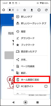 | ︙からホーム画面に追加が表示されない場合、googlechromeを開いてから、アドレスバーをタップして、カメラマークが表示されますので、カメラをタップしてgoogleレンズを使用して読み込むと、ホーム画面に追加が表示される場合があります。 また、最新のgoogle chromeに更新してご利用下さい。 |