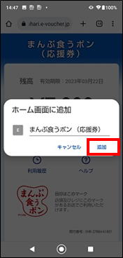| 5.ホーム画面にショートカットが作成されます。このショートカットをタップするとクーポンのトップ画面を開けます | |